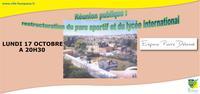 Ca y est ! le nouveau stade est annoncé et programmé , Les travaux du parc sportif et du Lycée international seront présentés par la Mairie et le Conseil Départemental lors d'une reunion d' information publique le lundi 17 octobre à 20 h 30 , Espace Pierre Delanoë .