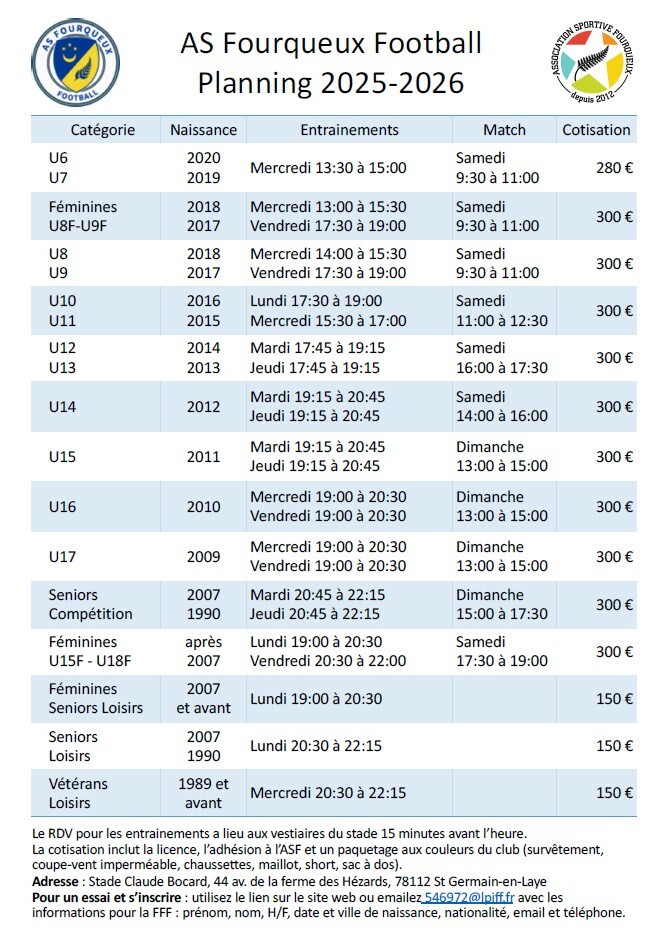 Nous vous souhaitons la bienvenue dans notre club de l’AS Fourqueux
